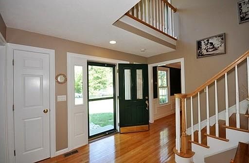 Privately sited Colonial provides a quiet oasis with lots of space for large gatherings, parties and sports! This home is gorgeous and has everything todays buyer wants! A gracious foyer with turned staircase greets you with a formal living and dining room on either side. A large open kitchen with island and separate eating area boasts granite counters and custom cabinetry. Step down into the cathedral family room complete with fireplace and mounted TV! Sliders bring you outside to an expansive 24 x12 deck which overlooks a huge yard complete with children's playset! A laundry room and half bath complete the first floor.Upstairs you will find three good size bedrooms and family bath. A lavish master bedroom includes a picture window and window seat, two wardrobe closets and two storage closets and large master bath. The finished basement will wow you! Perfectly set up for an aupaire/inlaw/guest rm,full bath, media room and home office! Abuts conservation and path to NARA Park!