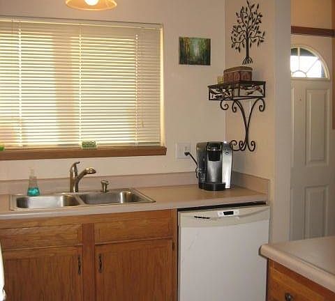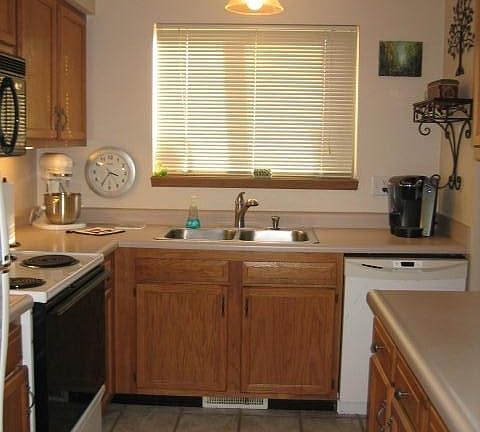 Desirable townhouse style condo with upgraded tile floors in the kitchen and laminate wood flooring in the living room. There is ample storage as well as large closets in both bedrooms. Upper bath access from master bedroom and hall. All kitchen appliances and water softener will stay. Stove and dryer plumbed also for gas. Neg: w/d