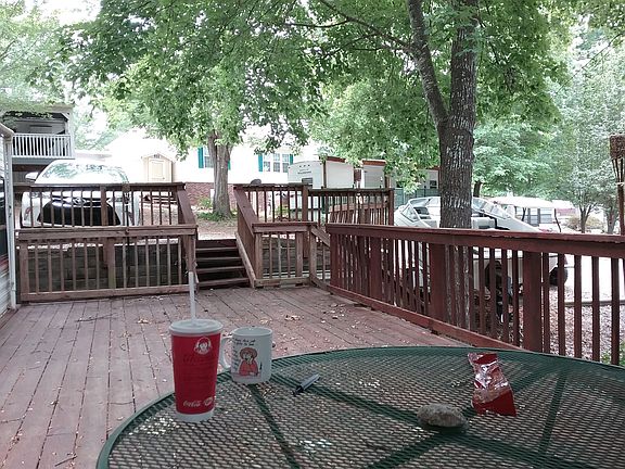 This is a nice shaded Lot close to the beach pool and Marina. Older model camper with a large partially covered deck.