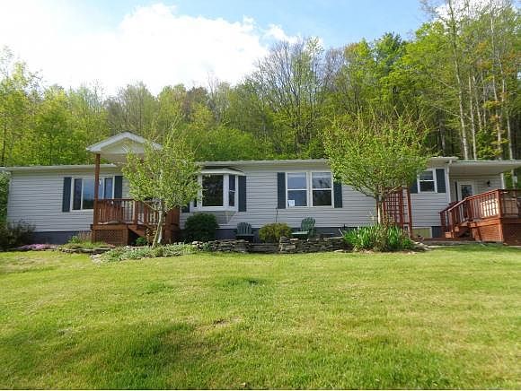 Beautifully kept double wide on a beautiful 6 acres! Updated kitchen with dining room, living room with large bay window and newer windows throughout!Central A/C, laundry room, large master bdrm with master bath. Two spacious bdrms with walk-in closets! Open Deck, Covered Deck, Stone Patio