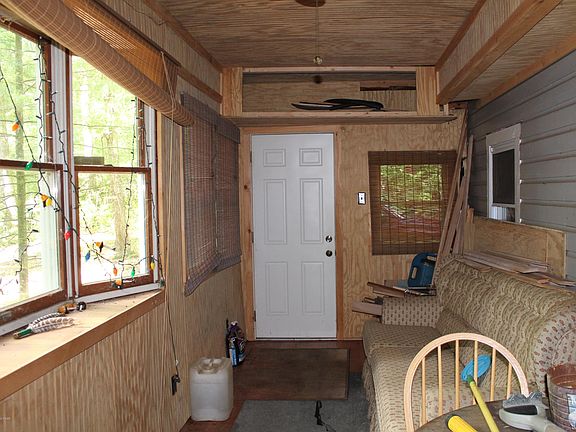 A true hunting and fishing cabin located in the Delaware State Forest at Pecks Pond surrounded by trees...Rustic Camp with Out House and indoor plumbing...Living Room with access to rear deck, bedroom, eat-in Kitchen with cathedral ceiling, enclosed porch...Snowmobile Trails are nearby and ATV Trails at Maple Run and Burnt Mills off of Route 402...Only 15-20 minutes from Lake Wallenpaupack...Must be a PA Resident to Purchase a PA State Cabin. Cash Transaction only.