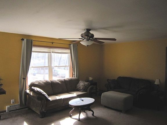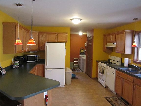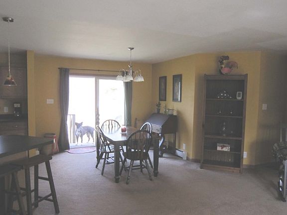 Open plan, 3 bedrooms, 2 baths, built in 2007. Bright living/dining/kitchen. Heated garage, shop and basement. Wooded setting but still walking distance to village, restaurants, etc. $209,000.