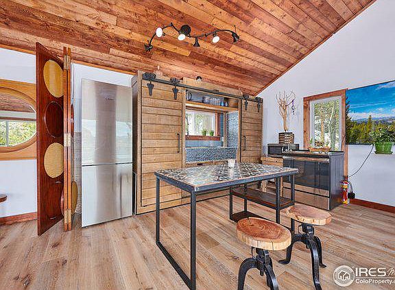 Colorado at its' very best. Every inch of space is used effectively with room to breathe and just BE, in this designer finished home. Amongst the splendor of the mountains experience this "LuxTic" Luxurious and Rustic mountain living overlooking snow capped peaks with close access to National Forest. Climb to the top of Echo Rock, hike endless trails with daily jaw dropping views of the mtns, wildlife, and robust wildflowers. Work and play from home with high speed internet and low speed RELAXATION. Custom finishes include: Open floor plan with built in Arhaus kitchen, Bosch refrigerator, W&D , Lopi woodstove, wood floors, locally milled wood ceilings. Master Bath includes soaking tub & glass enclosed shower, contemporary stone & tile, Midea electric heating, H20 purification system. Large Storage shed, 1 car attached garage (could be converted for second bedroom) Private road and no HOA. Close to Eldora Ski Area /Nederland shopping. Easy commute Boulder 30 min, Denver 45, DIA 60).