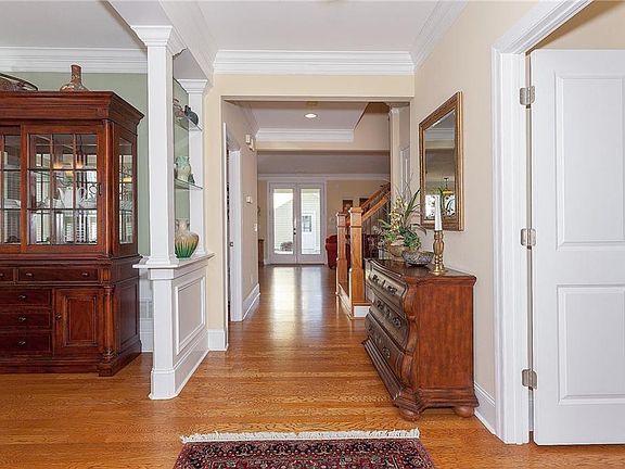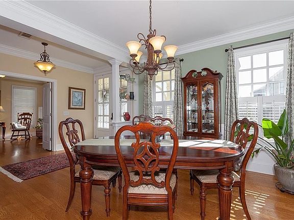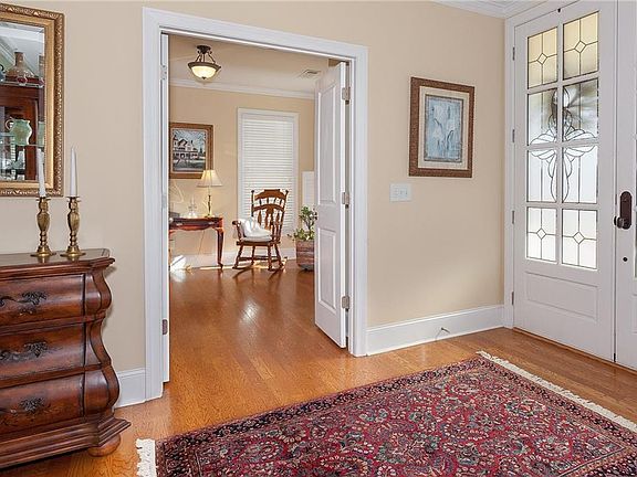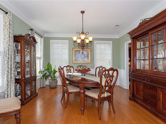 Epitome of Southern Comfort! Crown Molding throughout. Double door 9ft enrtry way with covered porch. Hardwood flooring on Main. 1st floor bedroom with built in shelves and private bath, tile walk in shower, & marble vanity. Eat in Kitchen includes upgraded large granite island with ample seating and large Butler's Pantry. Upstairs highlights Master retreat with ample windows and natural lighting. Resort like bathroom with soaking tub, double vanity and extended shower. Walk-in closet with plenty of light and beautiful built in shelving. A Must See!!!