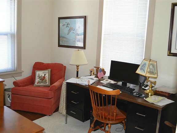 Stunning, well maintained and offering plenty of charm is this 2-3 bedroom, 2 bath brick single family home. From the covered front porch, to the spacious foyer and the hardwood floors, this home is delightful! Living room with gas fireplace and built-in bookcases, spacious formal dining room, first floor laundry and full bath. The kitchen features cherry cabinets and a dining area. The second floor features three bedrooms, one which is more suited towards an office due to the small closet, and a full bath. With a finished walk-up attic, the potential for another bedroom exists. One-car garage, newer gas furnace, newer roof and central air, too!