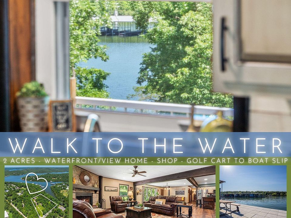 2 Acre Table Rock Lake ParadiseWelcome to your very own lakefront retreat @ 122 Peaceful Vly! This sprawling 2+/‑acre lake view paradise delivers the best of both worlds where rustic‑meets‑chic country interior w/ expansive spaces for friends, family, & countless lake memories all w/n walking distance of that ever coveted boat slip for quick lake access (add $). Step inside to a sprawling open‑concept floor plan where rustic charm shines, featuring wood‑beamed ceiling, durable waterproof wood laminate flooring throughout, thoughtful paint palette, and loads of natural light. The heart of the home is the home chef's kitchen, featuring beautiful glass backsplash, loads of cabinetry, a chopping block dine-in island, stainless appliances, & plenty of prep/entertaining space -- because as we all know, every great party ends up in the kitchen! The space flows seamlessly into the living/dining area, where a floor‑to‑ceiling wood‑burning stone fireplace anchors the room, making it ideal for holidays & cozy nights in.From here, step out to the expansive deck system, both covered & open, ideal for enjoying cool lake breezes, watching hummingbirds, & taking in soul‑soothing Table Rock Lake views. The vast backyard is perfect for kids, pets, BBQs, campfires, and summer nights under the stars.The owner's suite feels like a private spa and nature retreat in addition to second guest bed & bath, & laundry. Take the party downstairs to even more space for guests & entertainment -- a second living/media area, a bunk room, third bedroom, & a ready‑to‑finish 3/4 bath.Additional bonuses? An optional 10x20 boat slip (add $) w/n walking distance, a detached 40‑ft 2‑car garage/workshop w/ electric, & 16x20 storage building ideal for gardening gear or lake toys. Also new roof, siding, and guttering mean peace of mind for years to come.Come experience the best of lake life -- sunsets, serenity,