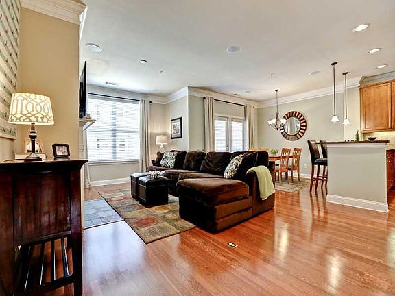 Perimeter Center Townhome walk to shops, restaurants, Perimeter Mall! Amazing 3 level townhome features very spacious rooms, open floor plan, high ceilings, hardwood floors, granite kitchen, stainless steel appliances, each large bedroom has its own large bath with granite topped wood vanities, master has treyed sitting room w/pocket doors - great as office, media room, exercise, or luxe dressing room! Open living space includes fireplace and custom furniture style built-in bookcase. Kitchen features large pantry. Built-in speakers, 2 car garage, more.