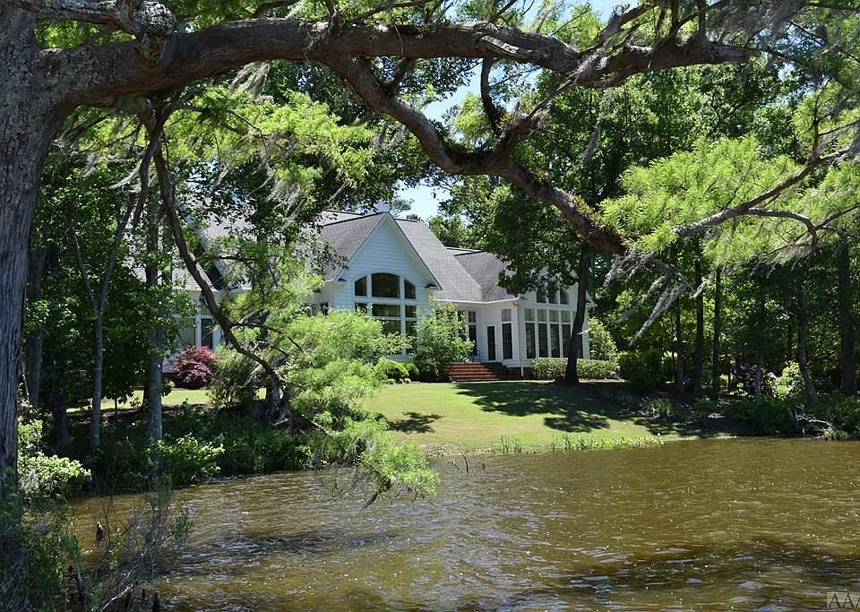 This stunning architect designed 5300 ft Nantucket style home on 1.58 acres with 275' of shoreline overlooking Yeopim Creek. Spectacular water views from every room, this home features a gourmet kitchen w attached pantry and wine room, 1st floor master suite w his and her baths,w/in closets,1st floor guest suite bedrm. The library w gas fireplace sits between the master bedrm and great rm w wood burning fpl. The 2nd flr features two bedrms w attached baths and oversized media and game room including reg. pool table, shuffleboard table and wet bar. Enjoy porch, deck and 300 ft dock w gazebo.