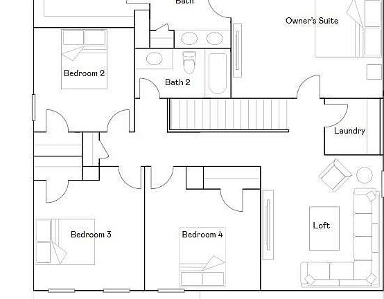 This new two-story home is designed for gracious living. Upon entry is a peaceful study ideal for at-home work, followed by an airy Great Room that connects seamlessly to the kitchen and dining area. Nearby is a rear patio to extend activities outdoors. Residing on the upper level are all four bedrooms and a versatile loft to provide additional shared living space. A two-car garage completes this modern plan.
