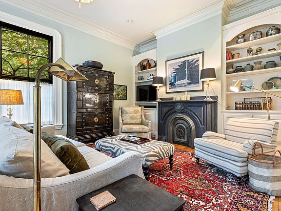 This stunning, spacious sun-filled West End townhome known as the ''Walter Hatch Residence'' has been meticulously restored and maintains and offers period charm and details including many inlaid hardwood floors. On the 1st floor you will be greeted at the entry by the impressive staircase, a generous Living Room with original fireplace surround and mantel and more recent bookcases and storage, as well as original plaster moldings and bay window. The large Dining Room offers a gas fireplace as well as a pristine tin ceiling. The Kitchen was renovated in 2022 and offers tremendous storage as well as a pantry leading to the dining room. There is a fairly recent ''mud room'' addition off the kitchen as well as access to a rear deck for outside entertaining and dining. The 2nd floor offers a large primary bedroom with a bay window that greets the morning sun. There are 2 additional bedrooms, one currently being used as a flex room. The 3rd floor has 2 bedrooms and a large laundry room as well as easy access to a rooftop deck that feels like you are in a tree house. 2 off street parking spaces are a big plus and major systems have been updated.