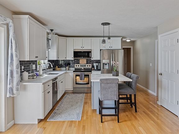 OFFERS ARE DUE MONDAY, 4/15, BY 6PM. A must see Storybook Cape, meticulously cared for & updated with 4 bedrooms & 2.5 baths. Open floor plan with first floor bedroom & full bath; spacious chef's kitchen with stainless steel appliances, soft close cabinetry, beautiful marble countertops, tasteful backsplash & center island with seating; formal dining room with decorative moldings & front to back living room. Gleaming hardwood floors & an additional half bath & laundry complete the first floor. Second floor has 3 spacious bedrooms & a full, Hollywood bath. Large walk-in closet in primary bedroom. The grounds make this home even more exceptional. Privacy, vinyl fenced backyard with stone landing, paver patio, firepit, stone sitting wall, lighting & beautiful shrubs & perennials. There is also a stunning paver walkway & steps with iron railing to the front door with additional attractive landscaping in front.