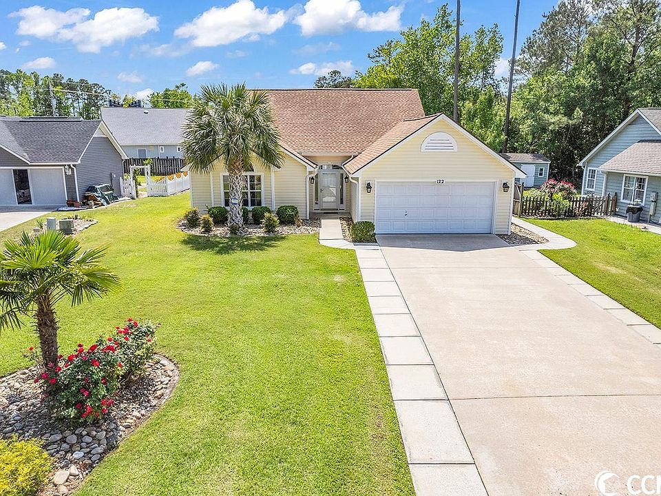Introducing this well loved three bedroom two bath home at The Preserve in Little River. Situated on one of the largest homesites in the neighborhood this spacious and attractive floor plan features volume ceilings, many windows, fireplace, split bedrooms and ample storage. The eat in kitchen is oversized and includes plenty of counter space and cabinetry as well as stainless steel appliances. A sun filled area dining room effortlessly flows into the great room for family gatherings and easy entertaining. Generous in size, the owner's suite presents a huge walk in closet and opens to a bathroom with double sink vanity, garden tub and separate shower. Bedrooms two has a window seat below a triple window and the middle bedroom has been extended to include an ideal spot for a home office or sitting area. Upgraded with wood look laminate flooring and 18" tile throughout. The garage floor has been freshly painted and includes a laundry sink for convenience. Situated on a well landscaped cul-de-sac homesite with an extra long/widened driveway. Membership to the swim and social club is separate. This community is convenient to beaches, dining, schools, shopping, many golf courses and all the attractions of Little River, North Myrtle Beach and Brunswick County, NC, as well as Hwy 31. Don't miss it!
