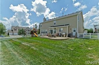 Fantastic 4 Bedroom, 2.5 bath two story with a smart, family friendly, rear staircase design! With 4 spacious Bedrooms, a Loft/Bonus Room, walk in closets in every Bedroom, a large Great Room open to the Kitchen-Breakfast Room, a formal Dining Room, an Office and a lovely fenced yard, this home is sure to Wow you! Features include: 9’ main floor ceilings, 42” Maple glazed cabinets, hardwood floors in the Entry-Kitchen-Breakfast Room-Powder Room, center island with granite countertop, recessed cans, walk in pantry, bay window with slider to a custom patio, huge Master Suite with double door entry, big Master closet, raised height double bowl vanity in Luxury Master Bath, central vacuum, security system, surround sound wiring, dual HVAC system, new carpet throughout (June 2013), 42” wood burning Fireplace, glass French Doors into the Den-Office, leaded glass front door-sidelights and more. The exterior is low maintenance with vinyl siding and enclosed fascia-soffits. The garage is oversized with 4’ added to the depth (23’ deep). Located just across the street from the community multi purpose sports court and near the many businesses, services, restaurants and recreation in Winghaven, on Hwy N and Hwy K, this location can not be beat!
