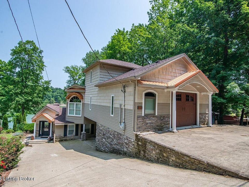 Welcome to 122 Rainbow Gardens Ext. Ln., your waterfront paradise. The entire reason you buy a lake house is THE LAKE. This property was made to sit and enjoy the beauty you are faced with from most of the MANY rooms in the home. The views are big, the walk is easy, the 3 docks are sought after, the yard is made for summer nights that shape your childhood, and the space is plenty. Rooms have been added around every corner to make the home ideal for groups that want to enjoy time together and the ones that want their own space. The main open living area has 180 degree views of the water through the Pella windows - even when we aren't at summer pool! In fact, it's the perfect set up all year long. Fourth of July, Thanksgiving & Christmas gatherings won't disappoint! With an attached two car garage, off street parking and a driveway, you can bring the whole crew. Two bedrooms & three bathrooms are on the first floor and just off the main living area with dining, kitchen and sitting areas, the doors open up to where the party happens. The perfect spot for cards and connection on the covered deck. A primary room with a view and bathroom to match are on the second floor, just down the hall from the garage. The second floor also hosts an office that looks out over Rough River. Work not a part of the getaway plan? Use it for what best fits you wish list. Through the garage and up some separate stairs, you'll find the teenage hideout. Close enough to be safe at home, but far enough away, you can't hear the gaming! In the walkout basement, there are two more bedrooms, a full bathroom, laundry, utility and sunroom that walks out onto the lower deck. There are two spacious storage rooms - one used for lake toys and the other for lawn work. You have to see every space this property offers, from the foyer with your first introduction to the connection to the water this home offers to the THREE dock slips that transfer with COE approval. Come put a face with a name, make your lake life dream a reality.