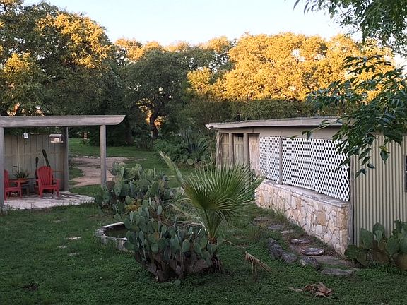 HERE IT IS -- POTENTIAL BOUTIQUE FARM, RETIREMENT, OR QUIET GETAWAY. 6.99 UNRESTRICTED AC WITH HOME, SEPARATE 800 SF YOGA/WORKOUT BLDG, 3000 SF OPEN BARN, STORAGE/STABLE BLDG, 2 GREENHOUSE FRAMES, WELL & 20K GAL RAINWATER SYSTEM. COVERED DECKS. SCREENED PORCH. KITCHEN/LAUNDRY COMPLETELY REMODELED TO THE STUDS LAST YEAR.- CABS, GRANITE, CORK FLOORING. CREEK, GREAT VIEWS, BREEZES, FRUIT TREES. TOP 4 AC HIGH GAME FENCED. ELEC. ENTRY GATE. SECURE. 1 HR AUSTIN OR SAN ANTONIO. GREAT FOR CHICKENS, GOATS, HORSES, BEST OF THE HILL COUNTRY.