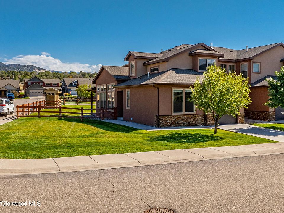Enjoy a maintenance free lifestyle in this FABULOUS 4-bedroom, 2.5 bath townhome with a 1-car garage. This townhome has had only 1-owner. Beautiful open floor plan with 8- ft doors, 9-ft ceilings with an entire wall of windows for tons of natural light-that's just the beginning. Upgrades include quartz counter tops, full overlay, rustic beech cabinets with easy close drawers, natural gas fireplace, central A/C and a great combination of hardwood floors, porcelain tile and carpeting. LARGE fully fenced yard. Walk or bike to town, school or check out some of the incredible trails! Won't you please take a peek!