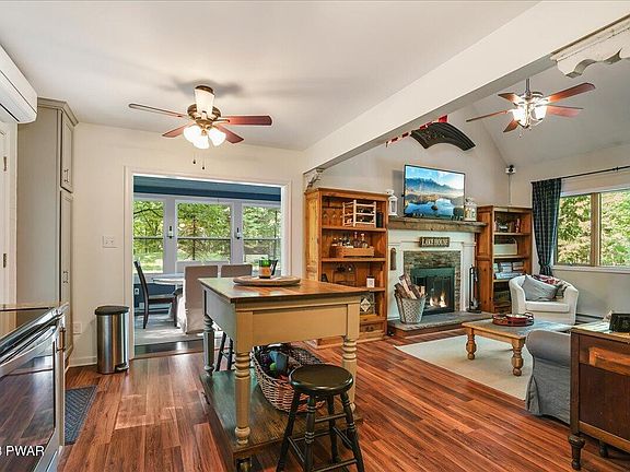 Cute as a button Gold Key home! Great curb appeal, updated and in move in condition, what more could you want?! This amazing home features a charming living room with wood burning fireplace & cathedral ceilings that opens to an updated kitchen w/ granite counters, beautiful cabinetry & S/S appliances. The sun soaked Dining Room is gorgeous! Home has 2 bedrooms plus loft, 2 full baths, fenced in backyard and shed. Enjoy the deck to bask in the sun or take a short walk to the 120 acre lake to fish, swim and enjoy. Amenities include a large beach, clubhouse, tennis, basketball, baseball field and more. Easy commute to NJ and NY and I-84. Enjoy the beauty of Pike County with hiking, the Delaware River, waterfalls and a short drive to the quaint and charming town of Milford PA. Low taxes!, Beds Description: 1 BED 2nd, Beds Description: 1Bed1st, Beds Description: 1 BED 2nd, Baths: 1 Bath Level 1, Baths: 1 Bath Level 2, Eating Area: Dining Area, Eating Area: Modern KT