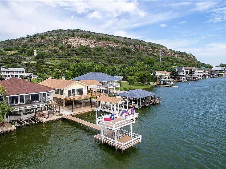 Wow! Investment buyers, Vacation Rental Seekers, Lake Lovers, Retirees, don't miss out on the opportunity to own this Lake LBJ waterfront home, being sold "AS IS". All indoor & outdoor furnishings, kitchenware, and appliances come with the home if desired. Here's a chance to update this home to your liking for minimal costs. Built on concrete and integrated concrete I - beams, sided with brick and vinyl, this house withstood the historic October 2018 flood, like no others around it, experiencing minimal water damage only to the bottom floor and some damage to the fishing dock. Situated at the base of Kingsland's Lookout Mountain, this 3 BR/3 Bath home boasts of amazing Hill Country and OPEN water views from multiple patios/balconies/dock areas. This delightful home includes a bottom story bedroom with full bath and laundry facility. Both large upper floor bedrooms have an associated full bathroom. Views are spectacular from the massive open family room and the master bedroom, both well appointed with multiple windows and glass doors leading to an upper viewing balcony. Phenomenal Wildlife scenery across the lake on an undeveloped ranch, and breathtaking sunsets over Packsaddle Mountain are an every day occurrence at this family getaway. Boating, water sports, and fishing are all a snap with your dual boat slips with electric lifts, & a fishing pier & dock. Spectacular views of the annual 4th Of July Aqua Boom fireworks await you. Get in on the fun at Lake LBJ.