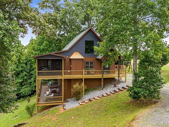 Discover your dream retreat in this stunning 3,000 sq ft home with breathtaking long-range mountain and Toccoa River views. Featuring an open-concept living space, this well maintained home offers a large kitchen for entertaining, a dining space, and a charming stone gas log fireplace. Enjoy your evening from the expansive screened porch off the main living space. The main level also includes an oversized master suite and a spacious loft with both a full and half bath. The terrace level is an entertainer's delight, offering a TV/game room, dedicated office space, and ample bedroom with private en suite bathroom. Addl' features include a bunk space off the bedroom and living areas. Don't miss the outdoor storage, potential garage space, and the cozy firepit area. With so much to offer this home is situated in perfect location for a lucrative rental property within minutes from Downtown Blue Ridge and McCaysville, offering all paved access within a established gated community with deeded river access. This home ensures both privacy and security. The possibilities are endless. Make us an offer!