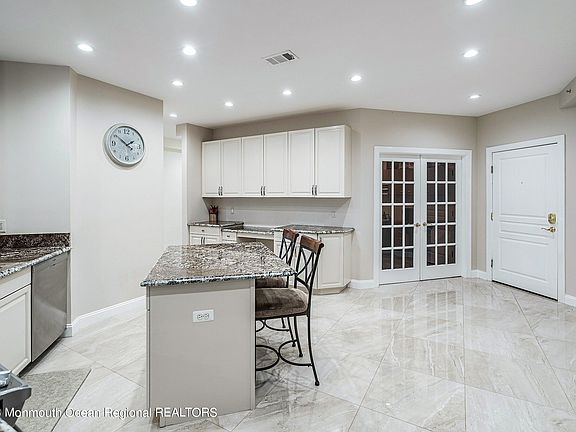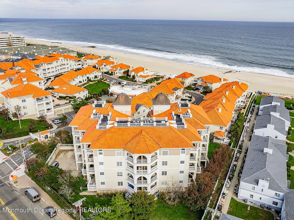 Love where you live! Located in the West End of Long Branch, this development is directly on the beach. Beach living at its finest but close to restaurants, shopping, and houses of worship. Your new home has been cared for and updated. The open concept living area with wood look ceramic tile is wonderful for large gatherings. The updated kitchen with high end appliances, including a newer sub zero refrigerator, has plenty of cabinets and both an island and counter for serving breakfast or a buffet. The den is a perfect home office, family space, or guest room. The primary bedroom has a large closet, private balcony, and master bath with shower and jetted tub. The two other bedrooms share a balcony. The elevator brings you up to a semi-private entrance and common space on the unit's floor gives you more outside space to enjoy the ocean views. With the large heated pool, clubhouse, fitness center and tennis court, there is plenty to do when you aren't at the beach. Direct beach access and during the season, an attendant to assist you with your chairs. Two parking spaces plus locked storage area for your larger belongings. This is truly a special place on the Jersey Shore.