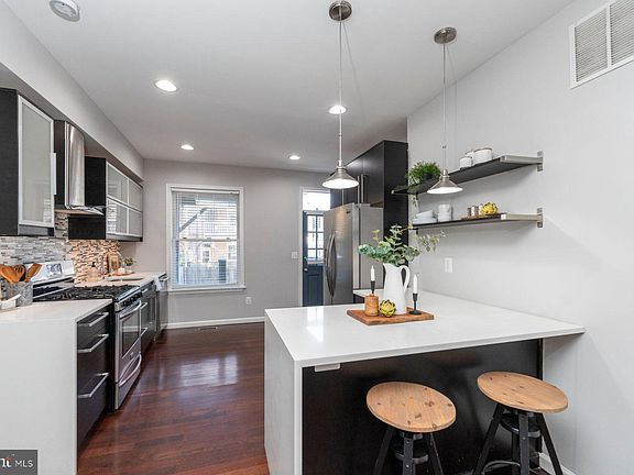Patterson Park Perfection! This lovely rowhome just steps from the park features gleaming hardwoods and tons of natural light. The updated kitchen shines with stainless steel appliances, a breakfast bar, and plenty of cabinet space. The open living area combines comfort and function. Upstairs, you’ll find two spacious bedrooms with hardwood floors. The primary bedroom has an ensuite bath, and the second bedroom leads to a two tier deck - the rooftop level is a private oasis with a beautiful park view! The fully finished lower level includes a versatile room that can be a bedroom, office, or home gym, along with a third full bathroom. Make an offer today and move in before the holidays!