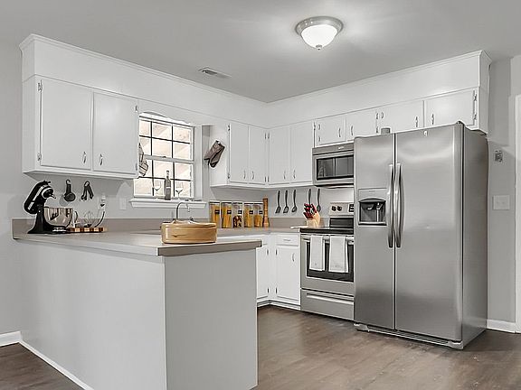 3 Bed 2 Bath PLUS a 4th Bonus Room! This beautiful large corner lot home has curb appeal Modern upgrades: New Architectural Shingle Roof 2018, New Stainless-Steel Kitchen Appliances (Refrigerator, Stove, Dishwasher), New Kitchen Countertops & Bathroom Vanities, Luxury Vinyl Plank Floors, New carpet, All Brick Wood-Burning Fireplace, Newly Painted Interior and Exterior. The shady backyard is enclosed by a double-gated chain link fence. No HOA, Close to Navy Base. Oversized 1 Car garage with workshop area open house Saturday 27th 1- 3