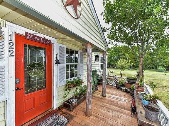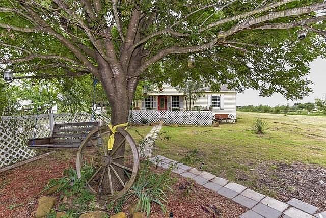 2.14 fenced acres, 8 x 10 storm shelter, new roof in 2015, 10 x 16 lofted barn w/ramp, outdoor rubber tiled (great for little ones who tend to fall) living room with fire pit and Wrap around seating (enough seating for about 20 people), hammock under mature tree, low maintenance landscaping, nearly 100 year old refinished wood floors, 12 x 20 new front deck, 100 year old eagle claw cast iron bath tub in master en suite, double farmhouse sink, front picnic area with table, chairs and fire pit, mature rose bushes and grapevines, apple tree, sequoia tree, mature agave plants, koi pond w/electricity, on a secluded street (4 houses), not far from town (10-20 minutes/5 minutes to Highway), country lifestyle, huge kitchen, every square inch is usable (no dead hall space). New blown in attic insulation (2010), new keyless entry front and back door (2017), new stainless steel appliances -dishwasher and stove (2015),minor kitchen remodel, full bathroom remodel on both bathrooms, new paint throughout, enlarged closet (from 2 closets to one larger closet in nursery, recessed lights in kitchen with one tube light above the stove. Fresh paint, kitchen floor retiled, 2 linen closets, built ins, double closet in bedroom, central heat and air, pantry.