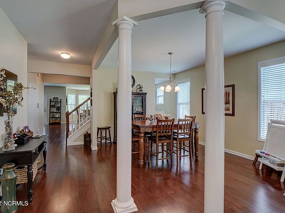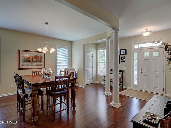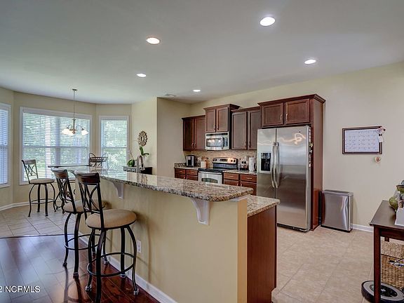 This creek front (possible lakefront see agent remarks) home is located in the sought after the lakeside community of Dogwood Lakes offering sidewalks, lakeside park with gazebo and is only 10 minutes to the beach. This popular Nicholas floorplan sits on 1/2 acre, offers 4 bedrooms and loft, 3 baths, open floor plan with kitchen featuring granite counters, stainless steel appl, staggered cabinets, tons of counter space, sit down bar, lots of recessed lighting, pantry and open to cozy great room with fireplace offering tons of natural light making it perfect for entertaining. Downstairs bedroom with full bath access is ideal for overnight guests. Wood floors though out living space and tile in the kitchen. Spacious formal dining room is light and inviting and breakfast room next to the kitchen is convenient for everyday dining. Large Master accented with trey ceiling leads to a roomy bath with dual vanities, large soaking tub, separate titled shower and a closet you will get lost in. Nice separate laundry room with custom shelving close to bedrooms. Relax at the end of the day on the back deck surrounded by trees, BBQing with friends in the fenced private back yard overlooking creek or relaxing on the front porch perfect for visiting with the community. Nicely landscaped with irrigation. Minutes from Topsail Island beaches and easy commute to Camp Lejeune, Stone Bay, MCAS New River, Jacksonville and Wilmington
