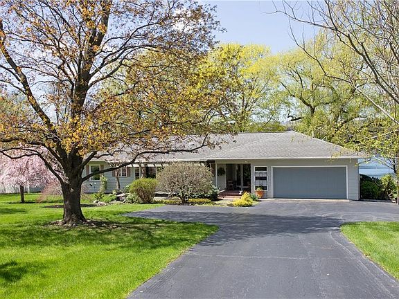 This beautiful Keuka Lake east side property sits on a 1 acre park like setting, with a long driveway off of the road, and 105 feet of level beautiful frontage. From the moment you pull in by boat or car; the landscape, yard and setting will draw you in. Through the charming pergola entry, you will find a home filled with large windows, bright and beautiful light, and a wonderful lay out with open kitchen, living and dining. The master suite is located on one wing, with 2 bedrooms and full bath on the opposite. Downstairs is a finished second living area, bedroom and full bath. The shady lakefront patio with spa, koi pond, over looks an expansive and private yard with a gentle walk way to the wade in beach. This home offers public utilities, and a quick zip in to town. What an opportunity!