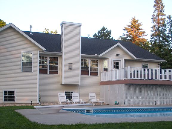 Beautiful, modern, custom ranch home, 1840 square feet on first floor, with partially exposed unfinished 1800 square foot basement ready for you to build to suit your needs, 18' x40' inground swimming pool, large fenced in backyard with mature trees for privacy. Direct vent gas fireplace with fan. All stainless steel appliances (stove, oven, refrigerator, microwave and silent Bosch diswasher), water softener and 75 gallon water heater. Custom walk-in shower in master bath with whirlpool tub. Walk-in master closet. Third bedroom has 2 closets. Main floor laundry. 3 car insulated garage with heater and Raynor garage door opener. Large drive way can accomodate an RV on side of house and additional parking for approximately 6 more vehicles and a boat. 22'x16' maintenance free composite deck. Covered front porch, 30 year shingles, 90% Hiel funace, 3 ton A/C unit Hiel 12 seer. Neighborhood Description Quiet deadend road with lots of mature trees.
