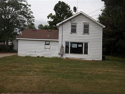 Exterior Features: Aluminum siding which needs repair on the side of the house. Foundation is block. Windows intact. Soffits present, no eaves. Back covered porch. Front porch. Shingled room. Asphalt driveway. Two car detached garage. House in fair condition. Interior Features: This is a 2 plus bedroom home with 1 bath located in the country right off the expressway. Kitchen with cupboards only. No dining room. Living room present. Vinyl flooring in kitchen in good condition.Rest of flooring needs to be replaced. Crawl space. No furnace seen,water softener and water heater present.