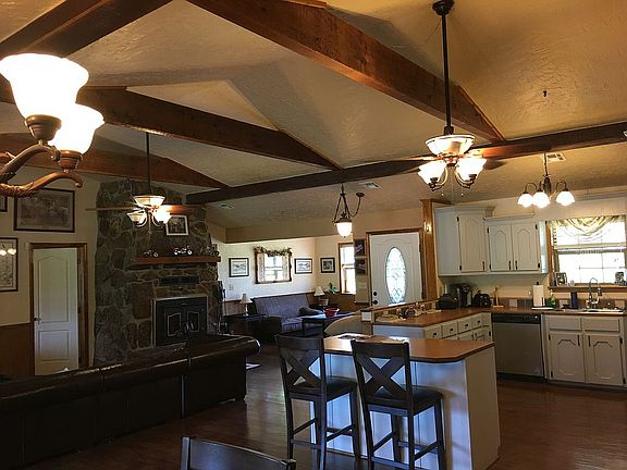 3374 sq ft 2 by 6 construction,38 brand new high end windows ,open floor plan ,large covered front porch ,massive wood fireplace ,cathedral ceilings, new wood floors, tile bathrooms , his and her walk-in closets, and a jetted tub . Huge Florida room on the back of the house with floor to ceiling windows and a ten man steel storm cellar . On 3 acres completely dog fenced with seasonal creek , half acre year round pond , fenced semi inground pool with deck and outdoor shower . A drive thru 22 by 36 foot RV shop with 220 electric , Three car attached garage .Permanent basketball hoop ,permanent indoor outdoor dog kennel connected to shop . Thirty foot square fenced and landscaped raised vegetable garden with professional chicken coop . Fully electric fenced with front gate ! Property is surrounded by horses and cows amazing views from every window Wide open floor plan with view of pond and foothills , massive builtins in front room ,master bedroom,and hallway . His and her walk in closets . Three bedrooms and large bonus room above garage with bathroom that could be used as a second master bedroom . Ten man steel under ground storm shelter in huge back porch . House is set back off the road and very secluded.
