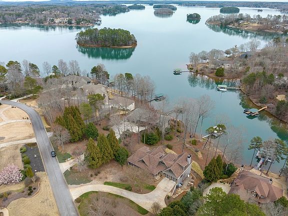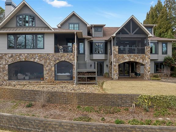You will not want to miss this quality built, custom home, with a covered dock in deep water along the shores of Lake Keowee. This is a must see. As you enter you will be wowed by the hickory wood flooring, the wood beams, stone fireplace, soaring wood ceilings, chef’s kitchen, and lake views. The architectural details are stunning and continue throughout the house. Just beyond the living area is the screened porch, with double doors that offer lake views and allow the outdoor breezes in. The kitchen has an 8’ island, granite countertops, custom cabinetry with amazing lighting to showcase the craftsmanship. The dining room is large enough to accommodate your favorite table and plenty of guests. The family room has a vaulted 2-story wood ceiling, large window to enjoy unobstructed lake views and a stone wood burning fireplace with a custom cedar mantel, and built-ins. This feels comfortable and cozy while you enjoy the view. The master suite is located on the main level. The bedroom is spacious, has a tray ceiling and lake views. The luxurious master bath includes a large separate shower, dual sinks, cast iron clawfoot tub, and vanity. The upper level includes an open bonus room area, a separate sitting room, two bedrooms and full bath. The lower level has tall ceilings, 8’ tall doors, a large recreation area with a wet bar, and a separate kitchen area. In addition, the lower level has a spacious bedroom, full bath and a cozy media room. The lower-level screened porch has a hot tub and wood burning fireplace, there is also a covered patio. The property is beautifully landscaped and meticulously maintained. Hardscaping includes paver stone cart path, two patio areas near the shoreline beach area. The home was totally updated in 2009. You are minutes to shopping, dining, pickleball, the NEW YMCA facility, and medical facilities. Approximately 20 minutes to Clemson stadium. Located between Charlotte, NC and Atlanta, GA, and easy drive to Greenville, SC