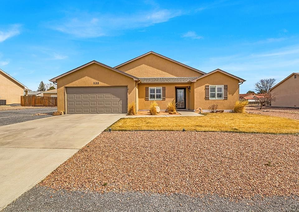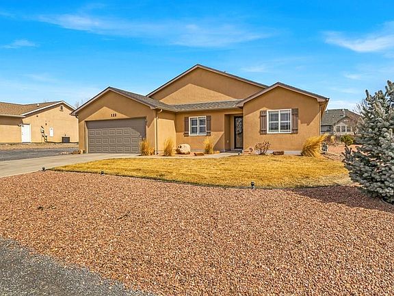 Offering the ease of main level living in a coveted area of Pueblo West, this immaculate stucco rancher is located near the golf course and within a few short miles of Lake Pueblo. The bright and open design, high ceilings, engineered hardwood flooring and soft neutral colors, creates a beautiful space for relaxation and entertaining. There is an open & spacious kitchen with upgraded cabinetry, a pantry, custom tile backsplash and a breakfast bar. The primary bedroom suite has a very large walk-in closet and luxurious private bath with two sinks, a garden soaking tub, shower and tile accents. Other special features include oil-rubbed bronze fixtures, plantation shutters, refrigerated central AC and ceiling fans. Out back you will find a custom 16 x 16 covered pavilion with a wood burning fire place, surrounded by mature trees for your own private little oasis. Plus there's ample space for RV or boat parking or the addition of an outbuilding/second garage. The tandem 3 car garage is already equiped with 220v outlet for electric vehicle charging. Call today befor this one gets away...