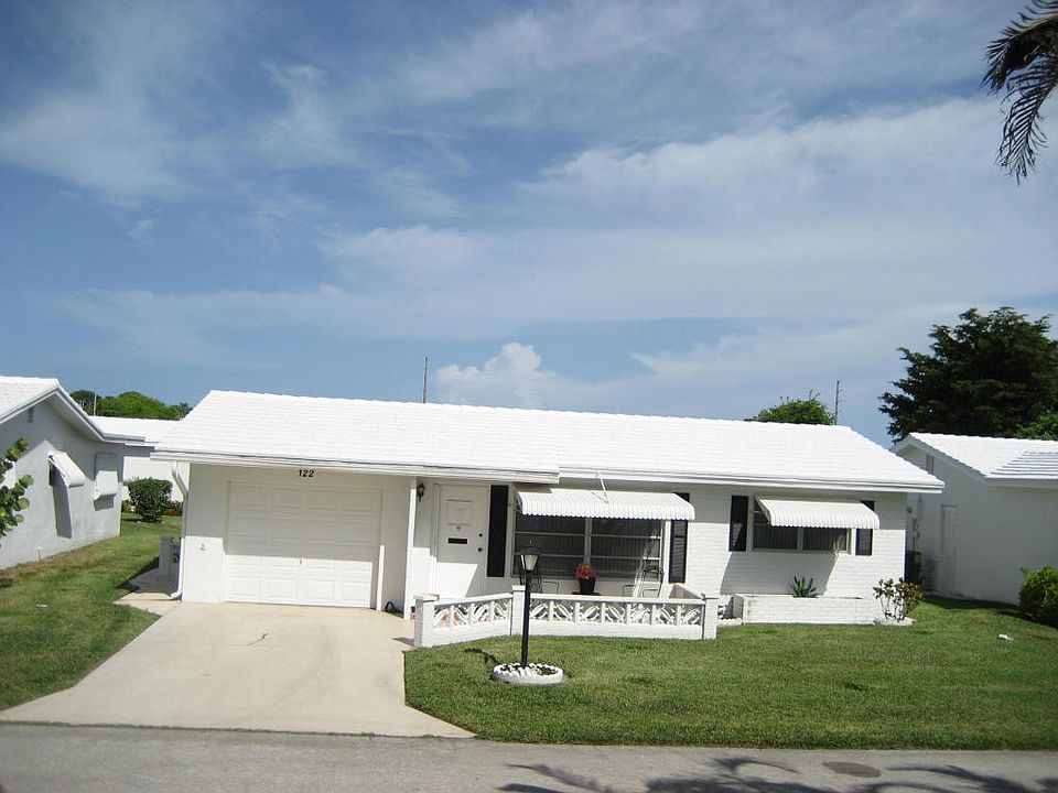 Fairmont Model features Spacious Living room, Dinning area, and 2 Good size Bedrooms. The one car garage has the washer, dryer,hot water heater, and AC. Roof&AC replaced.This home has a paid up recreation lease, Tile Roof, Walking distance to clubhouse. Very active community with a par 3 golf course, putting green, and 3 Clubhouses and 3 heated pools.Minutes to Ocean Beaches & shopping...