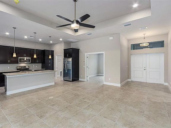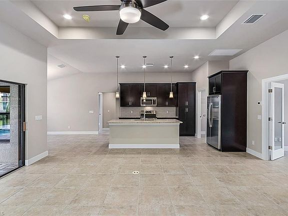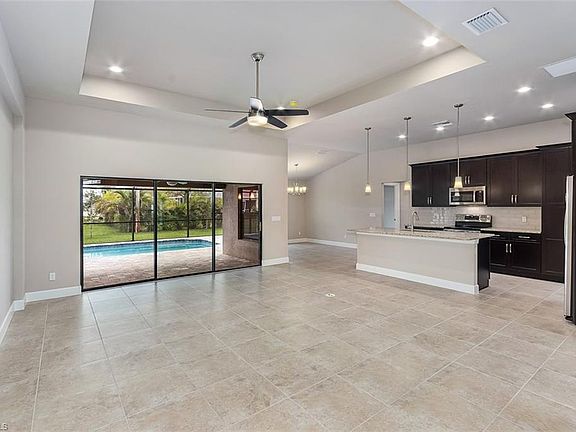 NEW CONSTRUCTION - Completed and ready to Move In!! Open concept 3 Bedroom plus Den Pool home with highly sought after Southern rear exposure. Split bedroom floor plan offers privacy. Tile floors throughout home. Kitchen/Great Room with 10'4" ceilings and 11'4" Tray ceiling and 12' slider to outdoor living area. Kitchen includes 42" tall cabinets with dovetail drawers and soft close doors, large island with space for seating, granite countertops, glass tile backsplash and stainless steel appliances package. Master bedroom with tray ceiling and sliding glass doors that open to lanai. Master bath with dual sink granite countertop, and large shower, private toilet room and large closet. Granite countertops in secondary bath. Designer lighting package and LED bulbs throughout. Large private lanai with pool, pavers and screen enclosure. Floritam sod with irrigation system. Not in a flood zone, save on insurance!