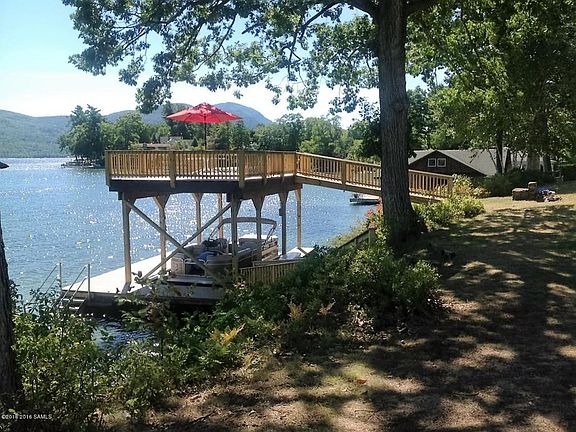 Go back in time in this charming Tudor home built in 1920. There have been upgrades over the years but at no expense to it's original purpose to enchant those who stay there. This 2-story ADK retreat has an expansive lawn reaching down to the waters edge where there is a new U-shaped crib dock with sundeck above. The 2 story house has a lakeside covered porch w/ a panoramic vista of the lake & mountains. There is a covered rear entry to the country kitchen into what used to be the maids quarters. The helps' area is now a private BR with a bath. There is a spacious dining room with fireplace, a second 1st floor BR & bath, and a spacious LR with stone FP. A screened encl. porch w/ an attractive stone wall is on the southwest end just off the LR. The 2nd Floor has 4 BR & 2 baths.
