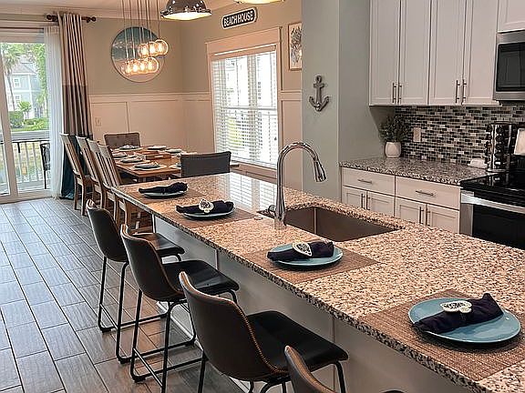 6BR, 4BA, heated pool, elevator and walking distance to the beach. All u need in a beach home. Open kitchen, dining & family rm with telescoping doors overlooking lagoon. Tile that looks like hardwood floors on main level. Master suite with private porch and huge master shower. Kids haven on 3rd living level includes 2BR & BA. Upgrade features all appliances including fridge, washer/dryer, blinds throughout, ceiling fans, pendant lighting, granite kitchen counters, tile baths & showers, wood tread stairs & much more. Rental rates in this community range from $2,500-$6,700 per week.