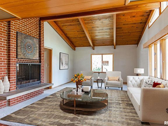Positioned at the end of a quiet privet drive, this custom built one-of-a-kind mid-century ranch has a unique open floor plan with double-sided fireplace to the family room and living room, large beautiful windows in the front and back of the home for amazing light and great views. The vaulted ceilings are lined with wood and trimmed out with wood beams. The screened in back porch is the perfect place to start and end your day. This home has had only one owner. The carpet in the family room was new in 2018 and the flat roof was repaired at the end of 2019.