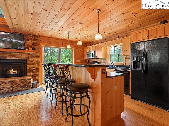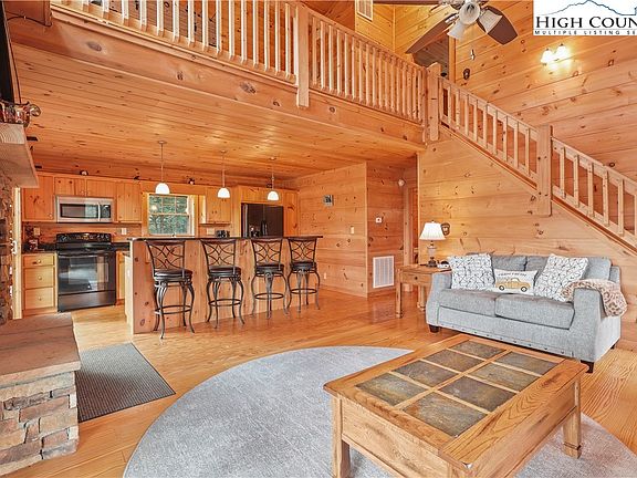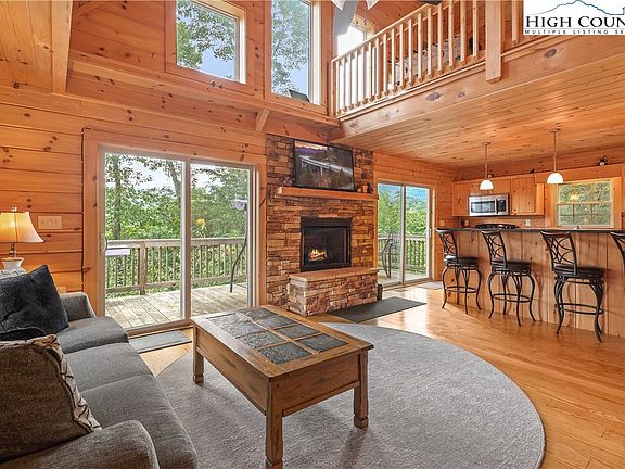 GREAT RENTAL POTENTIAL! Log Cabin with incredible long range mountain views and comes FURNISHED! Minutes to downtown Banner Elk, area ski resorts, restaurants & the Banner Elk Winery! This cabin would make a great full-time residence, the perfect vacation get-a-way or a rental investment property! Featuring an open floor plan with a tongue groove vaulted ceiling in the great room & a gas log fireplace to cozy up to on those brisk evenings! The spacious kitchen which is open to the great room has plenty of granite counter space and cabinets too! Both the great room and kitchen have access to the open deck which is perfect for entertaining! The main level also provides a large primary bedroom suite with an ensuite full bath. Upstairs you will find a generous size loft that works great as a family room/game room or for an additional sleeping area! Downstairs is the unfinished basement and laundry but has the opportunity to finish and expand especially with a 3-bedroom septic in place! Outside enjoy the peaceful serene setting on your open or covered deck or sit and enjoy an evening at the firepit! GREAT RENTAL FORECAST from Carolina Cabin Rentals provided in the documents attached.