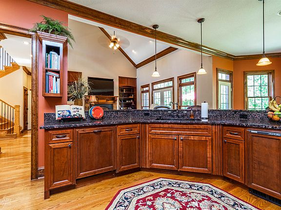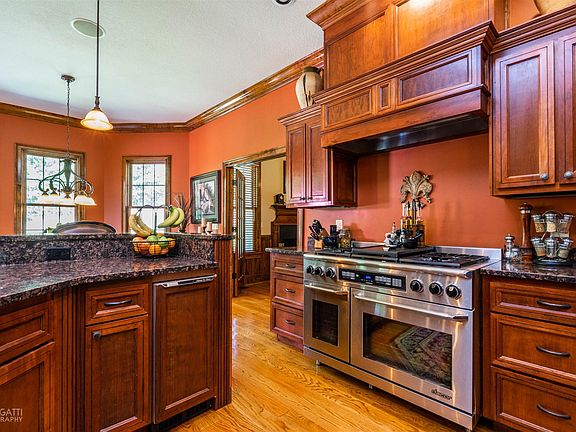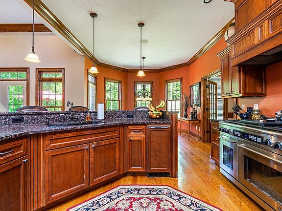 Custom built brick home in a gated community. Features include main level master bedroom suite w/sitting area, whirlpool tub, large travertine shower and his/her walk-in closets. Three bedrooms upstairs each with their own bath, fully finished walk-out basement with full kitchen, bar, dining, living room, 1/2 bath, wine cellar, Master bedroom with bathroom and guest room, exercise room and theater room. Other features include private pond, whole house sound, built-in icemaker, two fireplaces, two commercial tank less water heaters, Ethernet setup throughout, central vacuum system, etc…