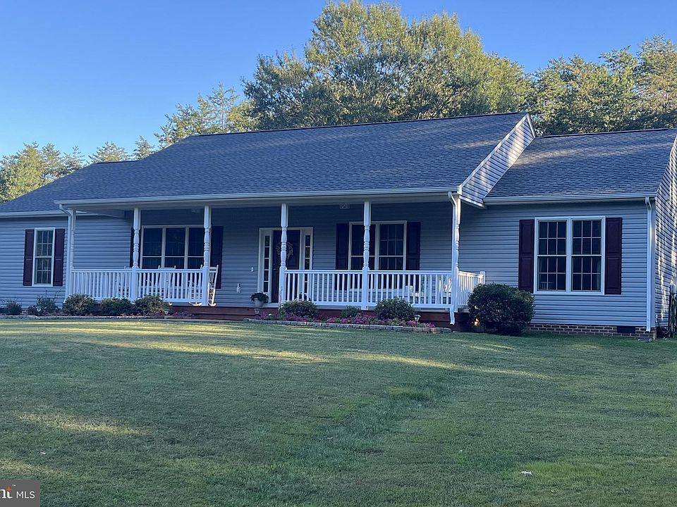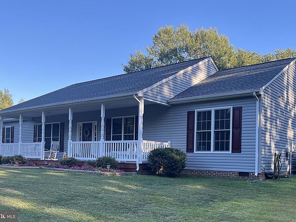 Professional photos to follow soon!! Come see this amazing spacious, modern styled, ranch home. It sits on a secluded oasis of 5, mostly cleared acres near the end of a private road in the community of Virginia Pines. This is a custom-built beautiful home in a fabulous private community in a highly sought after school district. The welcoming long driveway leading to a private, spacious mostly cleared property, provides quiet relaxation and tranquility. The community private access road is well-maintained by the HOA for only $120 a year. Bring your RV’s, boats, and other recreational fun as there is plenty of room for them at this home! The welcoming, spacious front porch means hours of quiet, peaceful relaxation time. The large and spacious family room boasts a high ceiling, beautiful LVP Lifeproof* floors, and a cozy masonry fireplace to relax and gather around on chilly nights. The spacious kitchen has stainless steel appliances (2021), a large island and plenty of room to entertain family and friends. The dining room is the perfect space for family gatherings. The functional office/third bedroom has built-in bookshelves and impressive high-speed internet to accommodate remote work. There are updated fixtures in the bathrooms, and all carpets have been professionally cleaned. The two guest bedrooms are large and updated with new carpeting and walk-in closets! Outside back you will find a large private patio to host family gatherings and BBQs with plenty of room for family activities and guests on the spacious lawn. There are 3 outbuildings that convey with this beautiful property. The first shed (12 x 24) has two stories and has electric wiring and a dedicated circuit for future hookup to become an amazing workshop! The second shed (8 x 12) has a new roof and front door for all your storage needs. There is a third 8 X 8 chicken coop and a 40 x 60 fenced area (animals and farm equipment do not convey with sale and will be moved with current owners). A new garage door opener has been installed. This home also boasts a new roof and new hot water heater! The Trane* HVAC is 2019 and is under a transferable warranty. The septic tank has just been serviced and has no issues. The well pump was replaced in 2022. If you want to expand your family fun, Able Lake is only minutes away. Work commuters to Quantico have only a 25 min commute, and I-95 only 15 min away. Don’t miss an opportunity to see this rare private, and well-kept beautiful property!