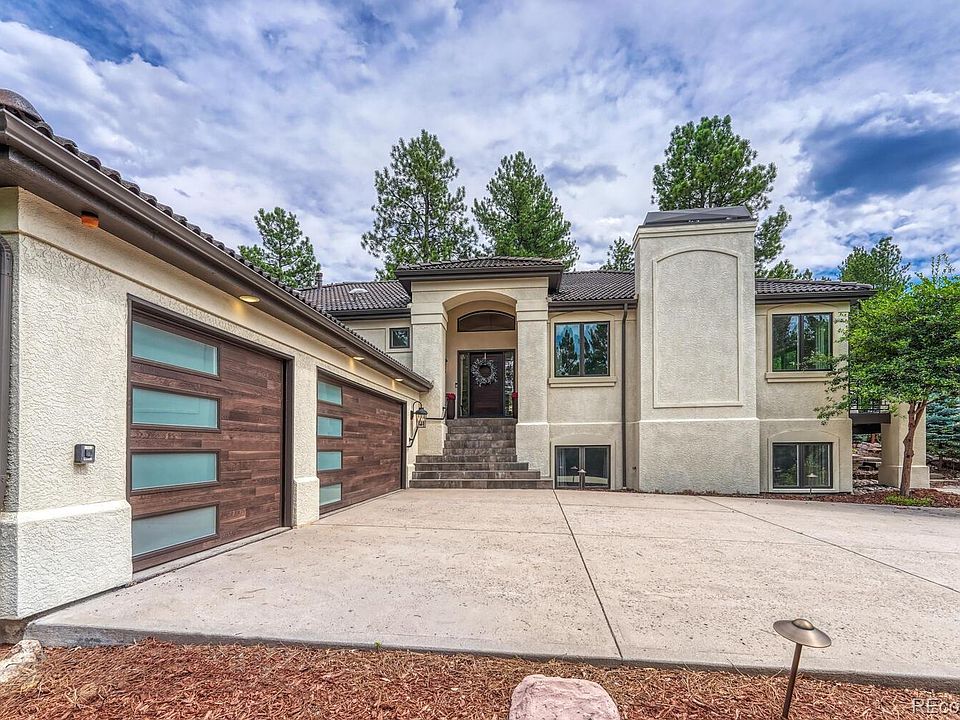 A Private Mountain Retreat Beyond the Gates. Experience nature in a stunning mountain-style custom home designed for modern comfort and timeless elegance. This beautiful home is immersed in nature, surrounded by lush woods, with wildlife including deer, hummingbirds, elk, wild turkey and the occasional bobcat. Panoramic natural views greet you as you arrive and depart along picturesque Silver Leaf Way. Resort style amenities include access to championship golf, pickleball/tennis courts, sparkling pools, and beautifully appointed clubhouses. The outdoor lifestyle provides miles of scenic walking trails and a true wildlife crossing just beyond your doorstep. Modern comfort meets mountain charm with the elegant finishes, open spaces, and design that blends seamlessly with the surrounding landscape. This home offers main level living with a large office with built in shelving and cabinetry, main level primary bedroom, bathroom and laundry room (washer and dryer included), as well as three guest rooms, two bathrooms and a laundry room (washer, dryer and refrigerator included) located on the garden level. The garden level recreational room has a fireplace and wet bar. Another great feature is a larger, spacious room that can be used for a golf simulator, movie theatre, home gym, or storage.