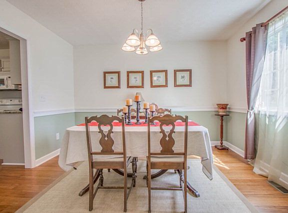 This home has had major updates in the last three months including new flooring and freshly painted kitchen cabinets! This spacious two-story home has master on the main, 3 secondary generous bedrooms upstairs, and a full finished basement. You won't find a better deal per square foot fixed up this nice. The backyard features a new fire pit and property backs up to the river, which makes this home perfect for animal lovers and nature enthusiast. Not far from Escoe Estates is a neighborhood membership pool in Hampton Park!