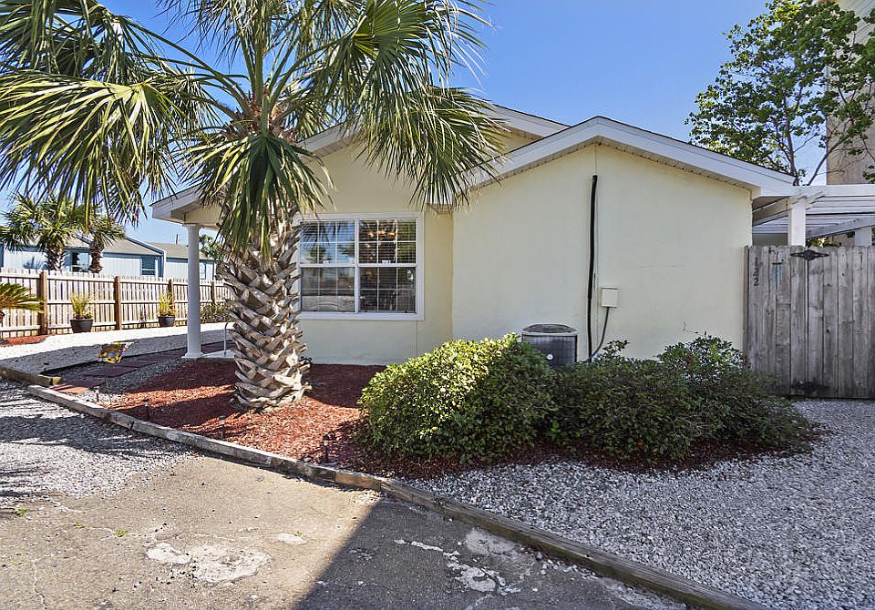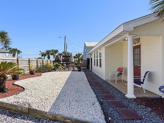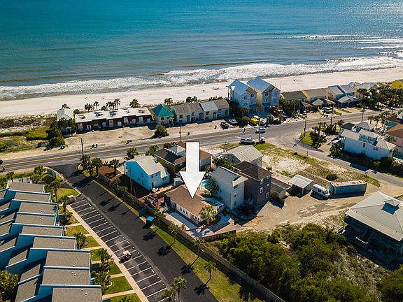 Adorable beach house just steps to the beach! Enjoy the view of the Gulf of Mexico from inside the home as well as the deck where you can enjoy spectacular views while having your favorite beverage or entertaining guests. This 3 bedroom, 2 bath home is located on the quiet west end of Panama City Beach. Some of the features include granite countertops, stainless appliances with a new stove, breakfast bar, dining area, enclosed sunroom, updated master bath w/walk-in shower, separate laundry room with storage and a covered patio with adjacent outdoor shower. There is a door from the kitchen and master BR leading to a private courtyard. This large lot would allow enough space to build a garage or carriage house. The landscaping is maintenance free allowing more time for relaxation.