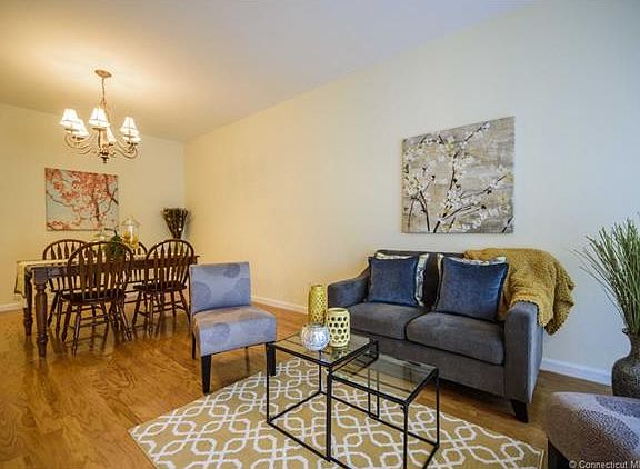Enjoy easy living in this beautiful Ranch condo, active adult 55+ community. This ranch has attached garage, gas heat, hardwood floors and full basement. New carpet in bedrooms, freshly painted and spiffy home. Front patio is enclosed, private for entertaining and cookouts. Active social community building includes dining room, hair salon, and bank!