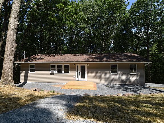 Brand New Stunning move in ready ranch. Spacious open floor plan with so much lighting! Custom kitchen with granite countertop, cherry cabinets, tile backsplash and SS appliances, Dining area opens up to the back deck. LR features exposed wood beams, high ceilings and HW flooring through out. 3 total bathrooms! 3+ bedrooms w/original hardwood flooring + vaulted ceilings. Master bedroom suite has WIC + custom tile bath. Full finished walk out basement features spacious family room + bonus room and possible 4th bedroom! Laundry room has Utility sink and washer/dryer hookup. Lower level also has a 3/4 tiled bath. All woodwork and stairs/trim is locally reclaimed and milled nearby. Close to lakes and pool and also to NJ border for commuting!