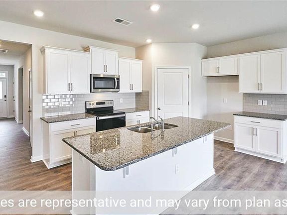 Welcome! The Cali floorplan is ONE level living at its finest. This ranch style home offers 4 bedrooms, 2 baths and an open floorplan. The kitchen is highlighted by a generous center island that opens to the dining area and family room. _ Granite countertops, cane sugar cabinetry and Stainless-Steel appliances make this kitchen the place to entertain. Relaxed under your covered patio!