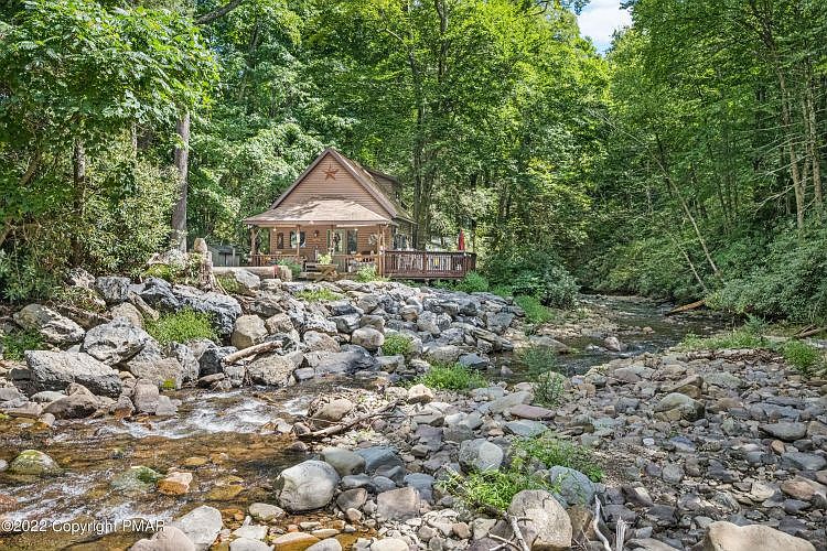HIGHEST and BEST OFFER DUE BY 9 15 22 @ 5pm Fall into a piece of tranquility once you view this very rare opportunity to own a vibrant creek front cottage right on Pocono Creek. Soak in the hot tub with a full creek view. Open all the doors and windows! Let the soothing water flow carry you away! If that is not enough, this home is minutes away from the one and only camelback resort, offering indoor + outdoor waterparks as well as ski season that brings visitors from all over the world. This home offers a brand new septic system accompanied with a brand new well. Exterior covered with vinyl siding and reinforced deck. Brand new sea wall installed. Interior covered in tongue and groove walls and ceiling. This home is being offered fully furnished and is an active short term rental.