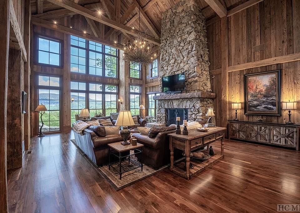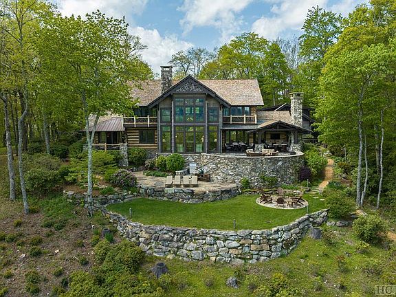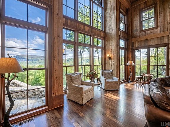 Introducing the luxurious Whispering Leaves, an unparalleled masterpiece nestled on an expansive 8.6-acre estate in the prestigious Mountaintop Golf & Lake community in Cashiers, NC. This extraordinary residence offers a captivating blend of opulence and natural splendor, providing an unrivaled living experience for those with discerning tastes. As you step foot into this exquisite home, a sense of understated elegance envelops you. The grand entrance reveals a masterful interplay of extensive beams and intricate woodwork, artfully framing the breathtaking panoramic vistas of the iconic Whiteside Mountain and the sprawling property. The great room, adorned with a massive stone fireplace, seamlessly connects to the open kitchen and dining room, creating a perfect space for entertaining and creating unforgettable memories. Indulge in the pleasures of a connoisseur's dream with the conditioned wine cellar, offering a sanctuary for your prized collection. The primary bedroom suite on the main level exudes tranquility and boasts a stone fireplace, providing a private retreat with awe-inspiring views. Two additional guest suites grace the upper level, accompanied by a cozy sitting area complete with a wet bar. For your VIP visitors, a private guest suite with a separate outside entrance ensures ample space and exclusivity. The outdoor spaces of Whispering Leaves are designed to enchant and inspire. Relax in the covered outdoor seating and dining area, featuring yet another stone fireplace, as you overlook the expansive estate-sized property, firepit, and resort-style lounging area. Explore the walking trail that leads to the serene pond and meadow area, immersing yourself in the natural beauty that surrounds you. Whispering Leaves is more than just a home; it is a sanctuary where luxury and nature harmoniously coexist, offering an all-encompassing experience for those seeking the pinnacle of refined living.